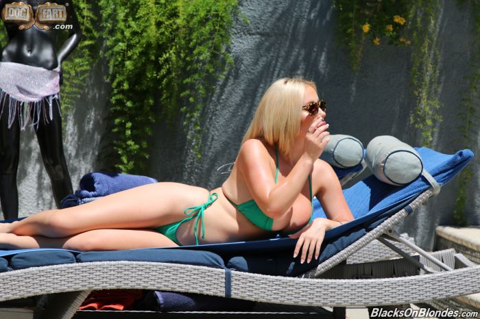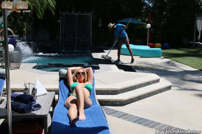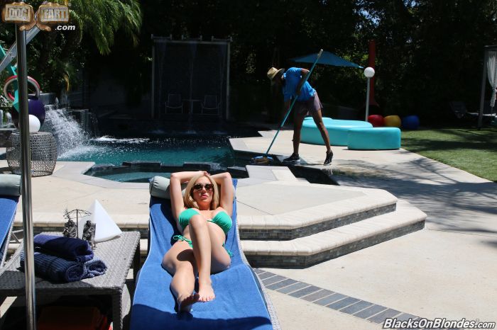 Savannah just cannot believe the size of the trouser snake that is dangling in her pool man's pants. Is that thing for real. She is shocked and like most women just needs to know for herself if he is really packing or somehow has a cucumber in there. She can get all the advice in the world she wants from friends but sometimes actions have to speak louder than words. In this case the situation really works out when the pool man asks her if she has a hose he can use due to a valve misconnect and she remarks how she would like to use his hose. He is shocked especially when she pushes the issue and asks if it is real. Oh damn indeed it is as he pulls out the most massive black cobra she has ever seen. Any self respecting woman when presented with a huge cock will immediately drop to her knees and gobble it up. Trained well on sucking cock and whoring about at a young age Savannah jumps into the filth like a pig in slop and gobbles down the massive man root like a starving Donner party member. Soon enough she has the massive root plunging balls deep in her dripping soppy sweet cunt pie. It's a rollicking afternoon at this slut's house as she discovers just how real her poolmans' pole really is. Face blasted and dripping it's all well that ends well.