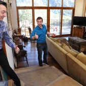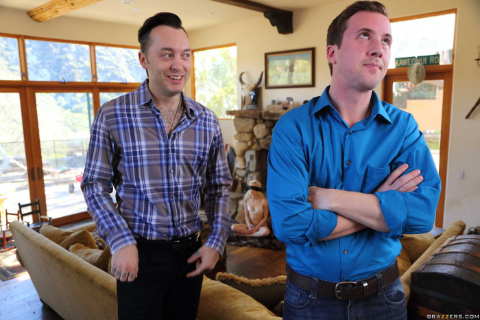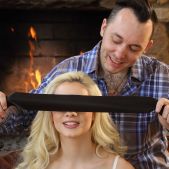 Petite Elsa Jeans is standing next to a fireplace. She is wearing sexy white lingerie. She moves down her bra to show her beautiful tiny tits. Elsa takes off her panties and shows her puffy pussy. She spreads her legs so we can view her asshole. A man wearing a shirt and black trousers joins he. He covers Elsa's eyes, so she can't see anything and swaps with her brother in law. Her brother in law puts his big dick in her mouth. She sucks it until he is hard. Then, he licks her sweet pussy and asshole. He starts to fuck her tight twat without a condom! When he's almost cumming, he takes out his big dick to cum all over Elsa's pretty face.